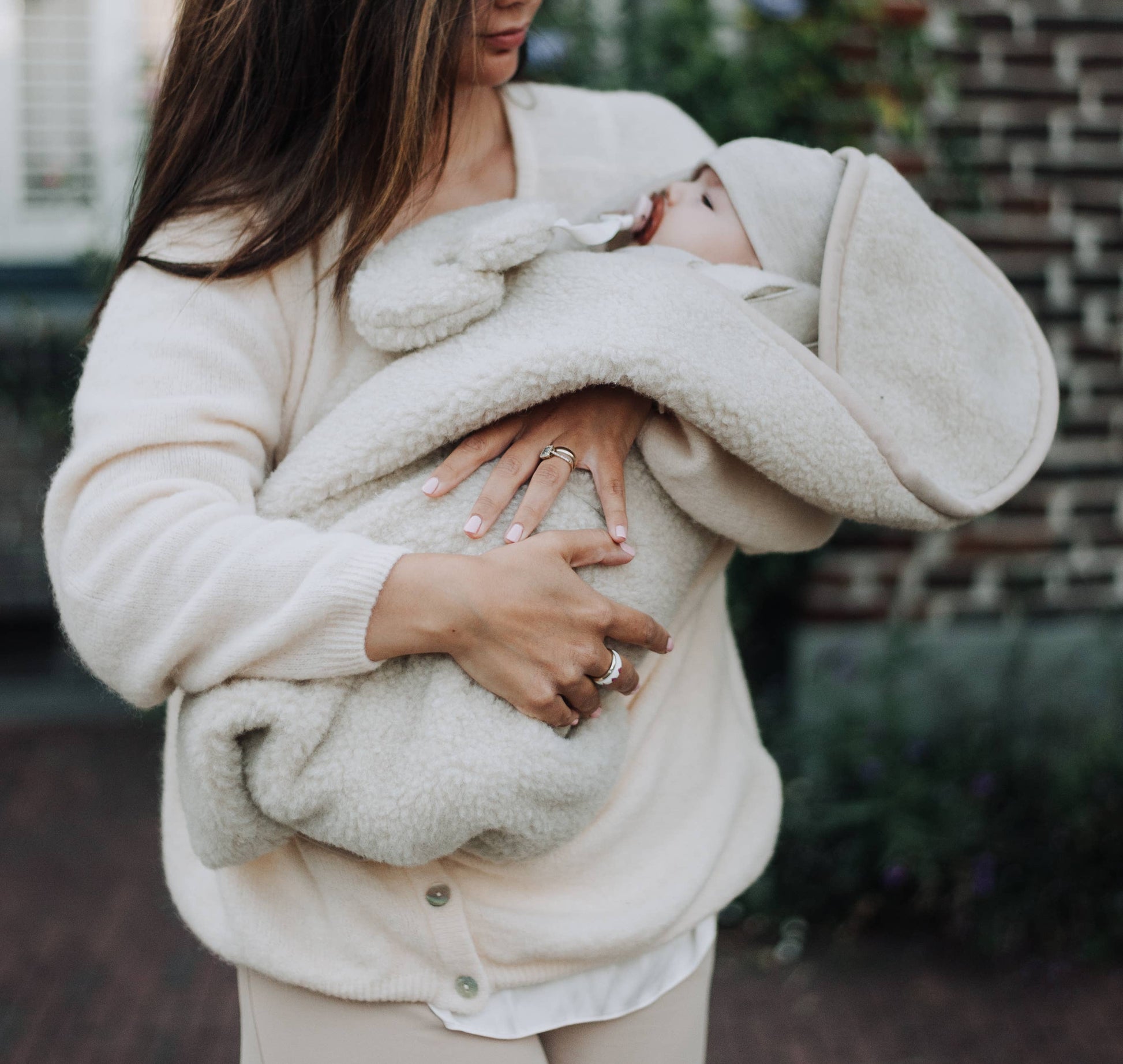 The wrap is made from skin-friendly, hypoallergenic merino wool, known for its silky-soft texture and gentleness on even the most sensitive baby skin. The natural fibers allow the skin to breathe and prevent your child from overheating, even when snuggled up close to you.